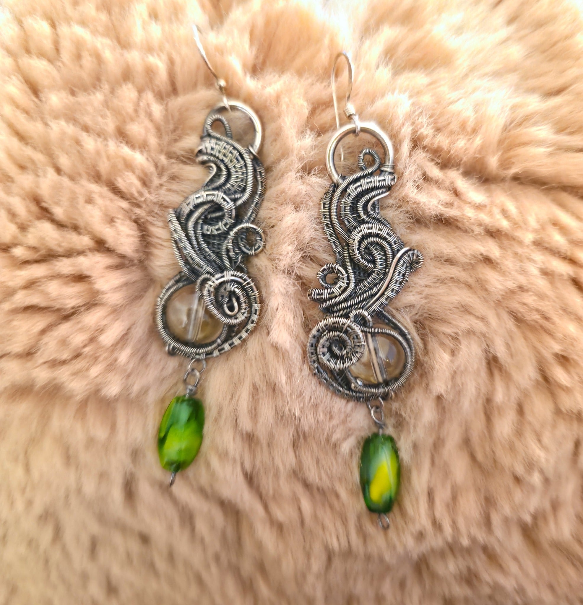 Sterling Silver Jasper Earrings with Yellow & Black Moissanite