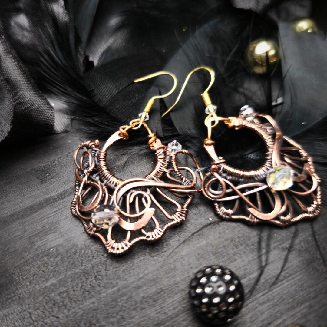 Healing Copper Wire Wrap Earrings - Artisan Boho Chic Earrings for a Festive Touch