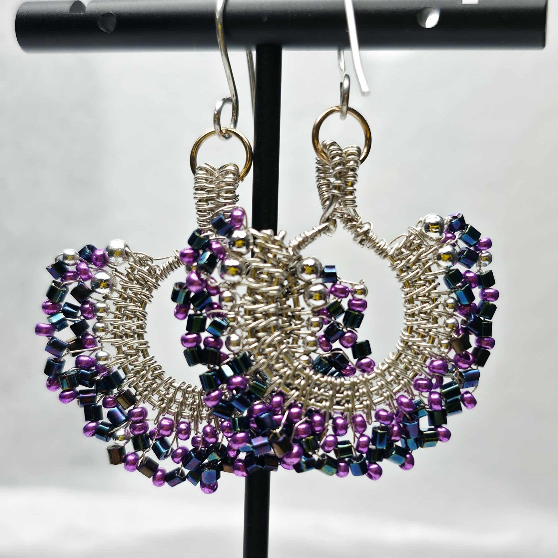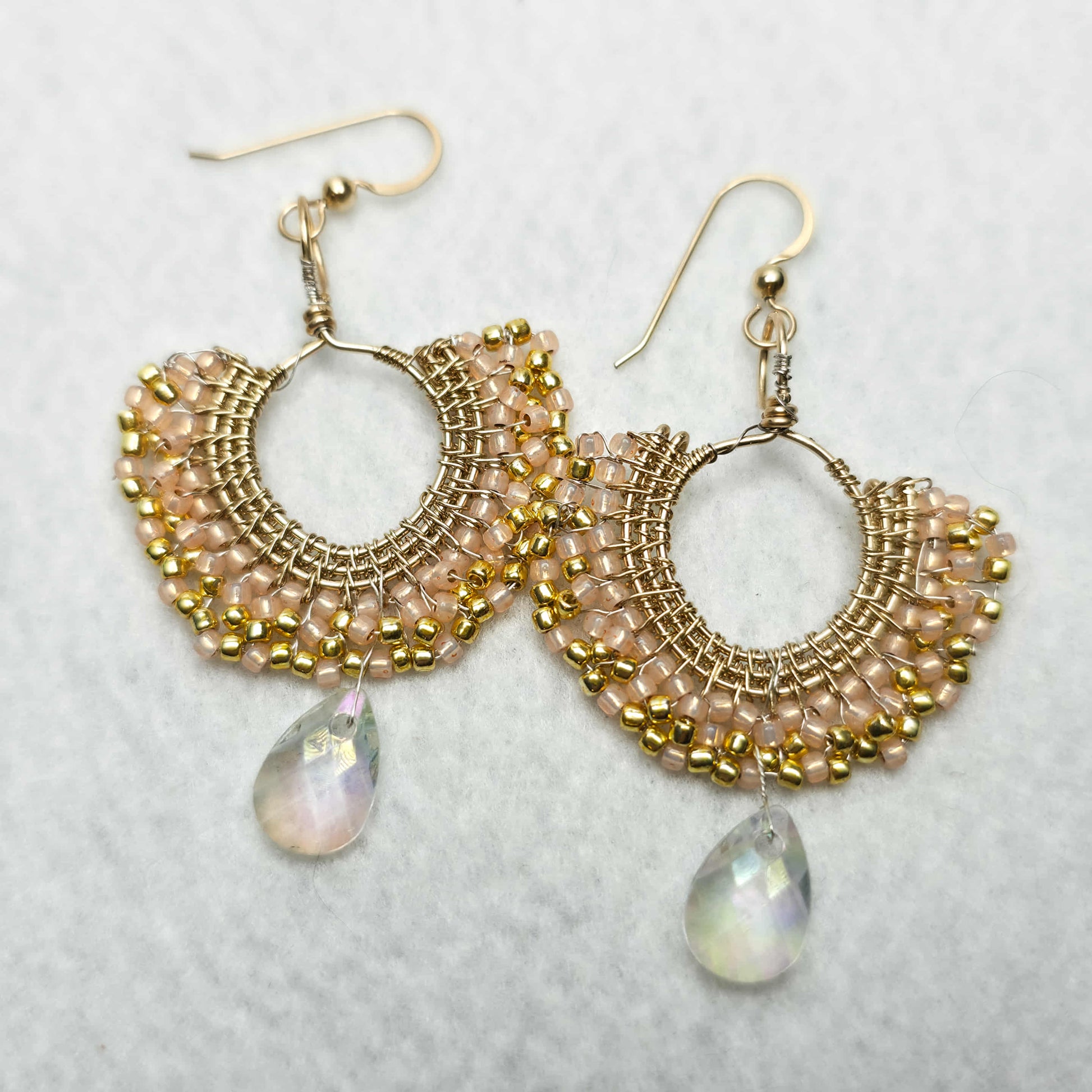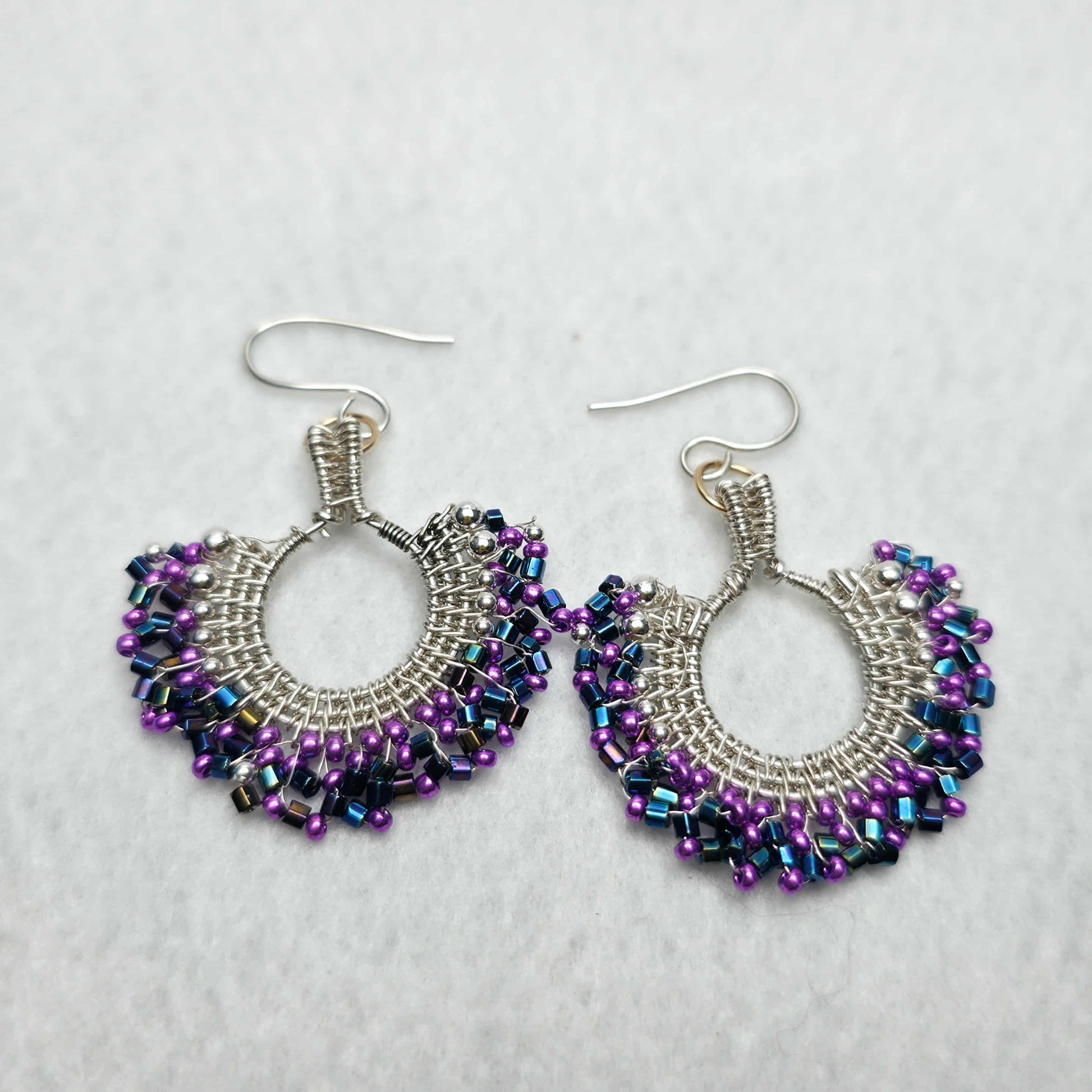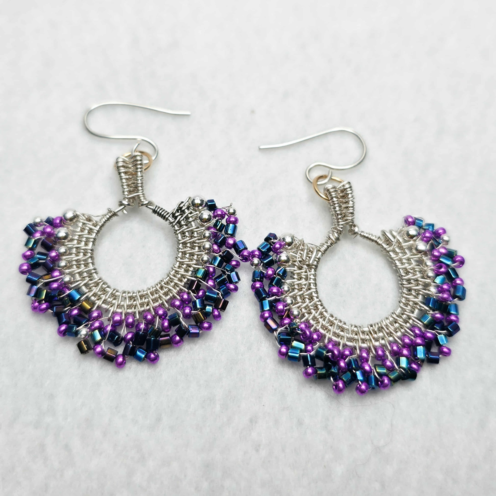 These hand-woven fan earrings are crafted one pair at a time in your choice of bead colour. Each pair is shaped, wrapped, and finished by hand in your selected metal (sterling silver, 14k gold fill, or copper), creating a piece that is uniquely yours while still offering the ease of choosing a colour at checkout.