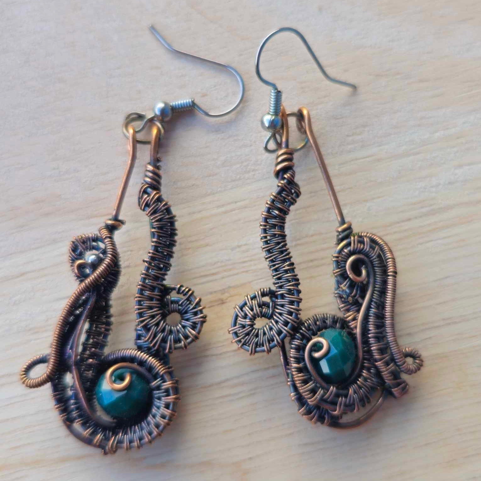 Discover the intricate beauty of these Handmade Wire Weaving Earrings, meticulously crafted with a unique wire weaving technique. Featuring stunning turquoise accents, these statement dangle earrings are perfect for adding a touch of artistic elegance to any outfit.