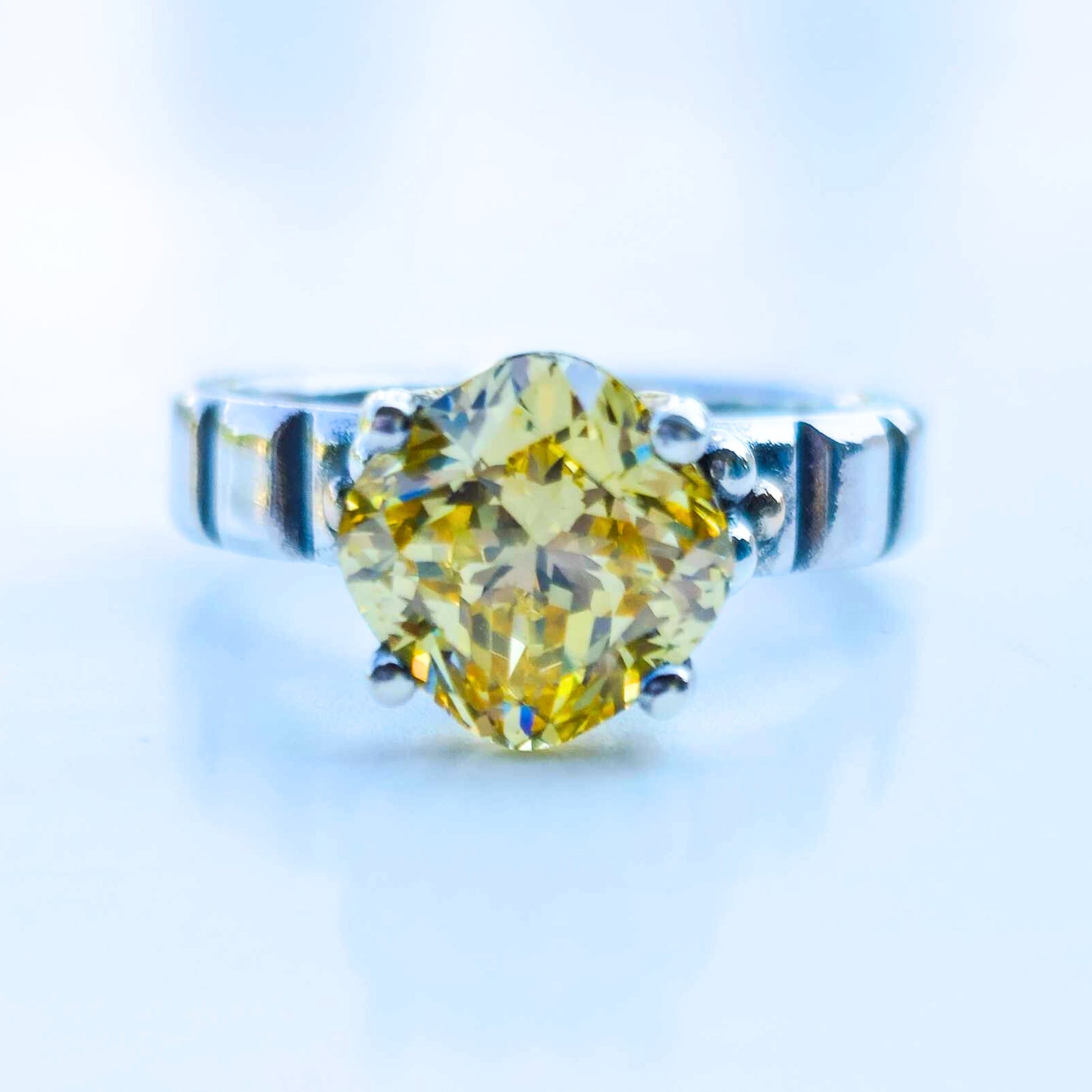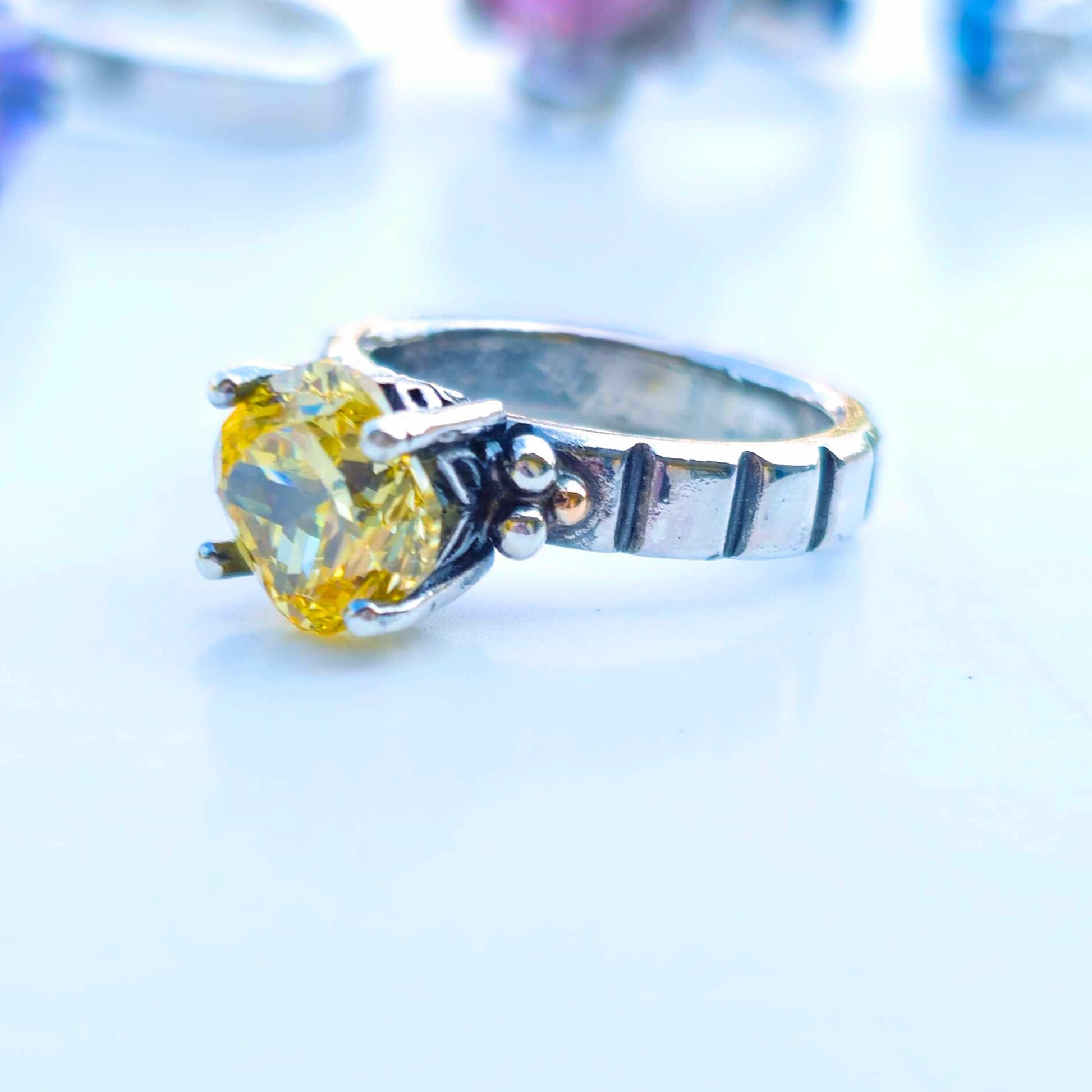Summery Statement: The vibrant yellow hue of the cubic zirconia evokes the carefree spirit of summer, making this ring a perfect accessory for warm days, beach getaways, or any occasion that calls for a touch of sunny elegance.
