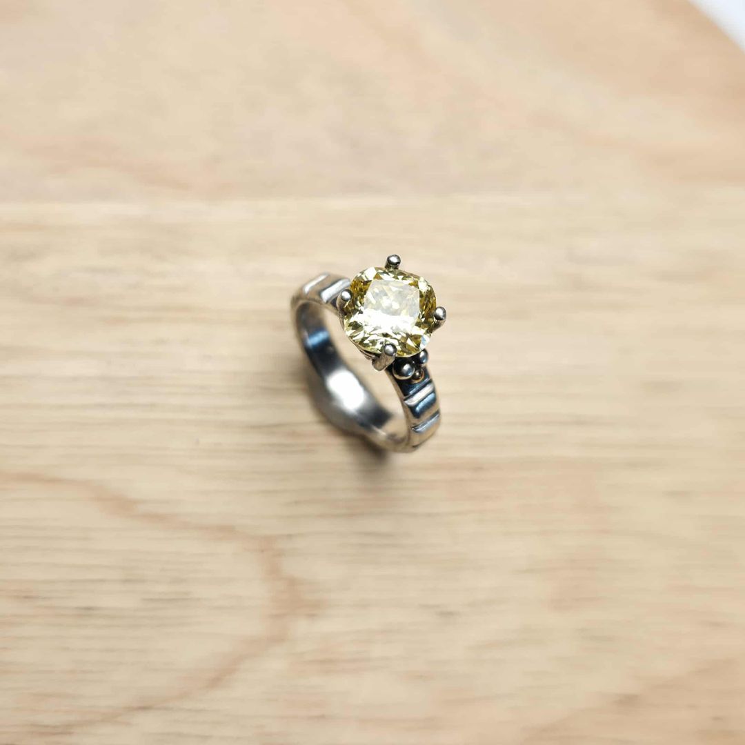 Fancy Yellow CZ Cushion Cut Ring - A Sun-Kissed Celebration of Summer Elegance
